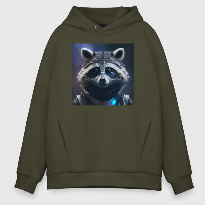 Мужское худи Oversize хлопок Енот в стиле футуризм нейросеть