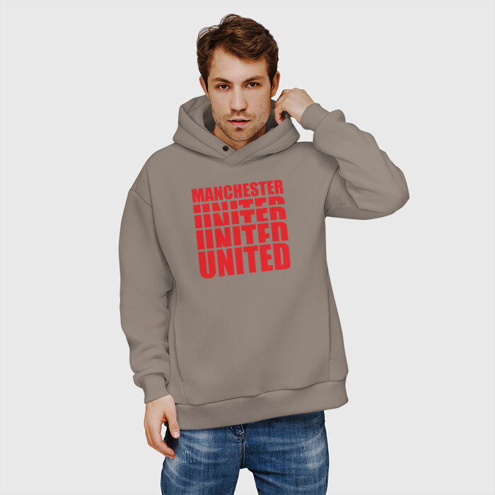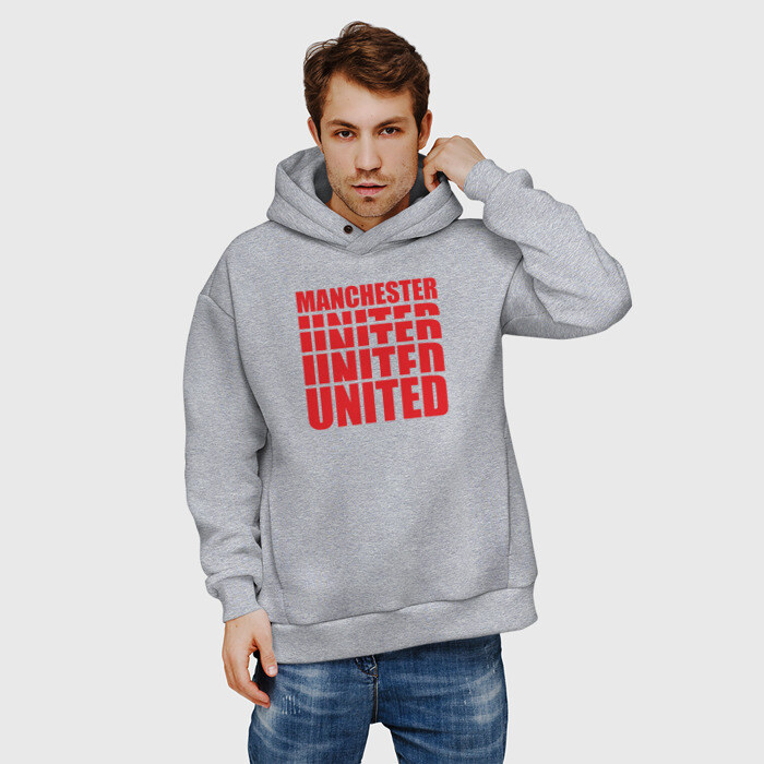 Мужское худи Oversize хлопок с принтом Manchester United red