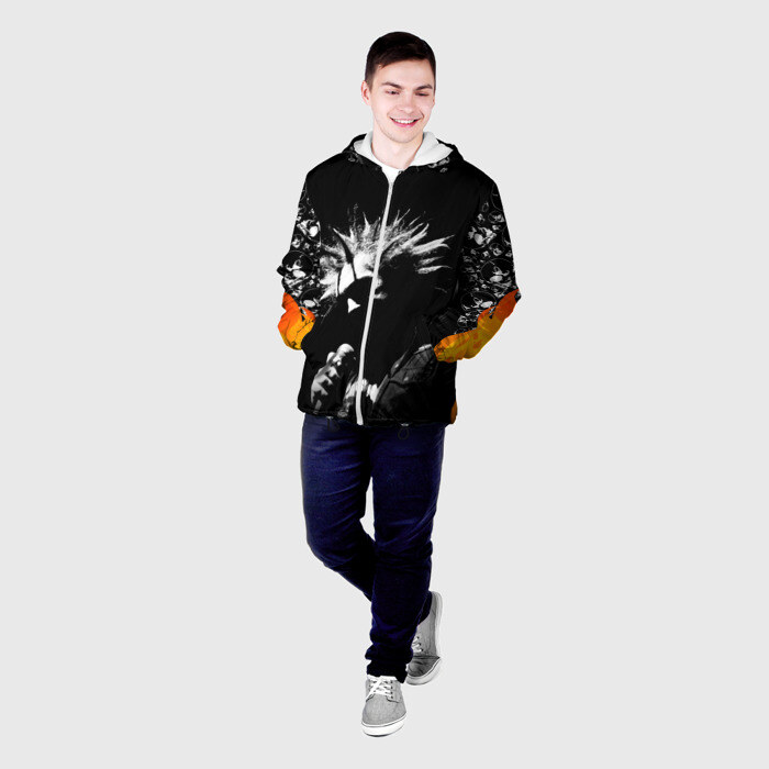 Куртка 3D сшита из плотного быстросохнущего материала, по всей поверхности которого наносится принт. Подойдет для осени и весны: внутри теплый флисовый подклад, капюшон защитит от дождя, руки согреются в боковых карманах. Можно сделать со своим дизайном.