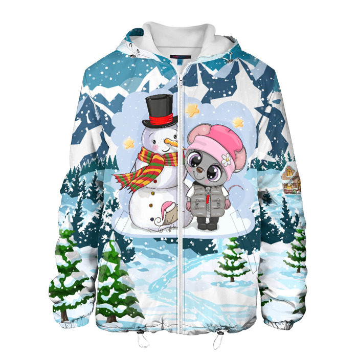 Мужская куртка 3D Милая мышка со снеговиком