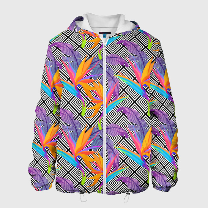 Мужская куртка 3D с принтом Тропические цветы и узоры