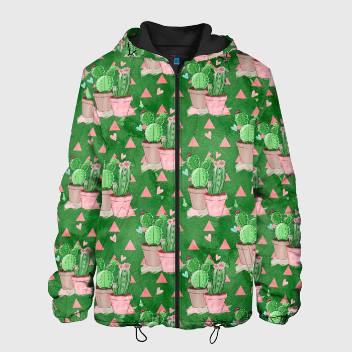 Мужская куртка 3D с принтом Кактусы в горшках green