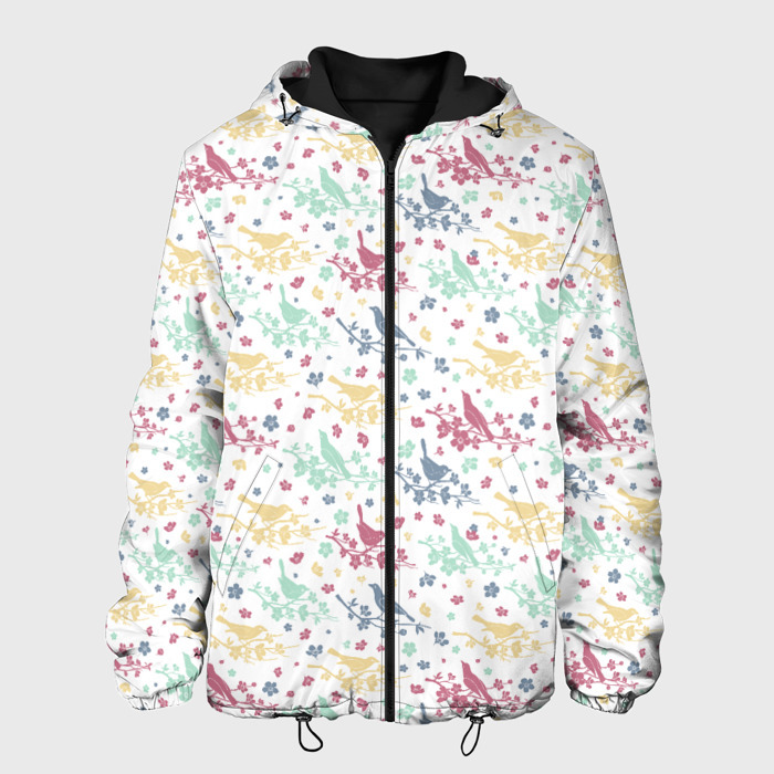 Мужская куртка 3D с принтом Весенний паттерн с птицами