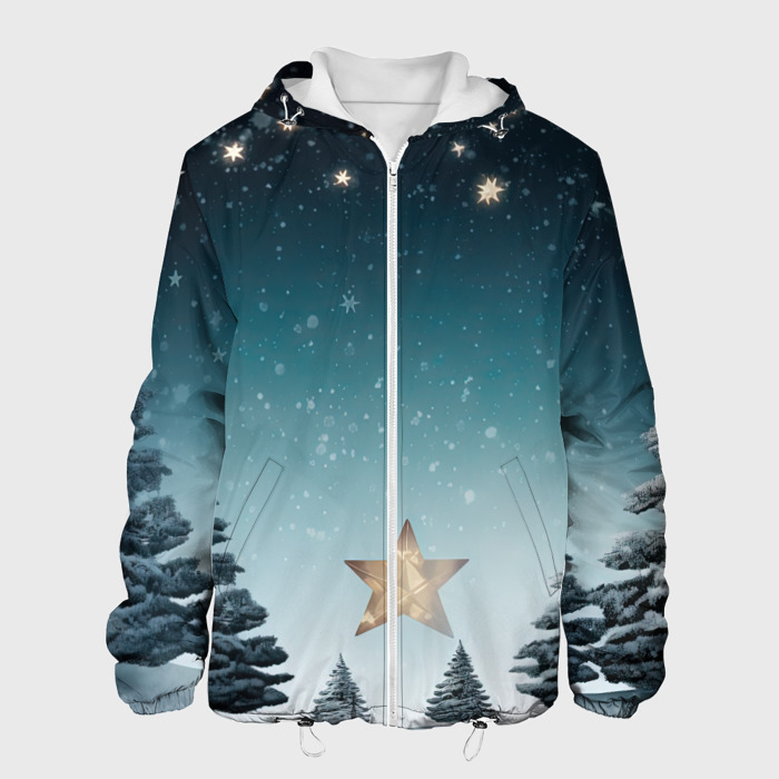 Мужская куртка 3D Зимний пейзаж с елями и снегом