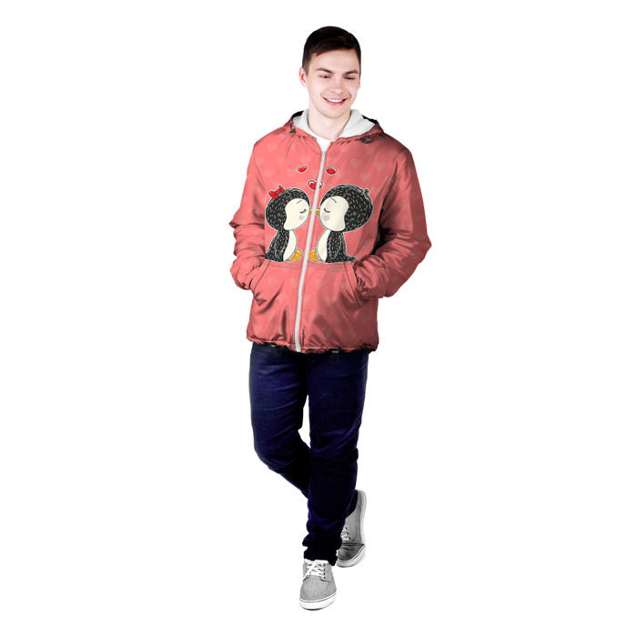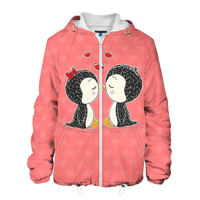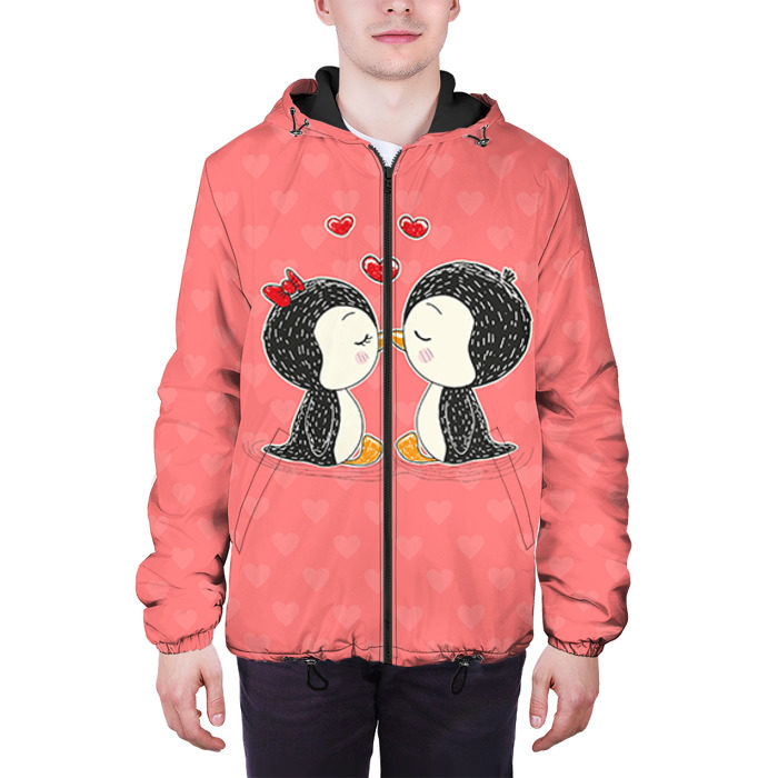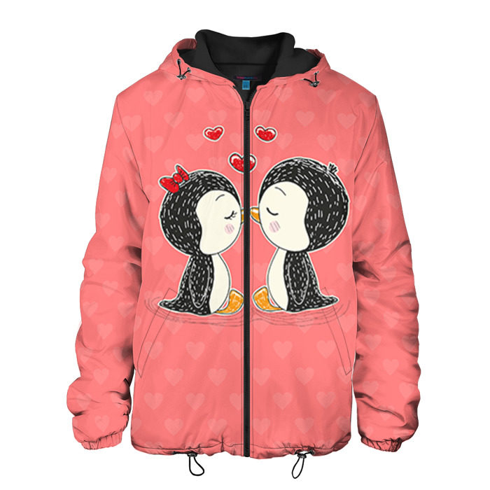 Мужская куртка 3D с принтом Влюбленные пингвины