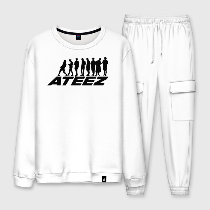 • на свитшоте круглая горловина, мягкая резинка по низу. Брюки заужены к низу, на них два вида карманов: два “обычных” по бокам и два объемных, с клапанами, расположенные ниже линии бедра. Брюки с мягкой трикотажной резинкой на поясе и по низу штанин. В поясе для дополнительного комфорта — широкие завязки