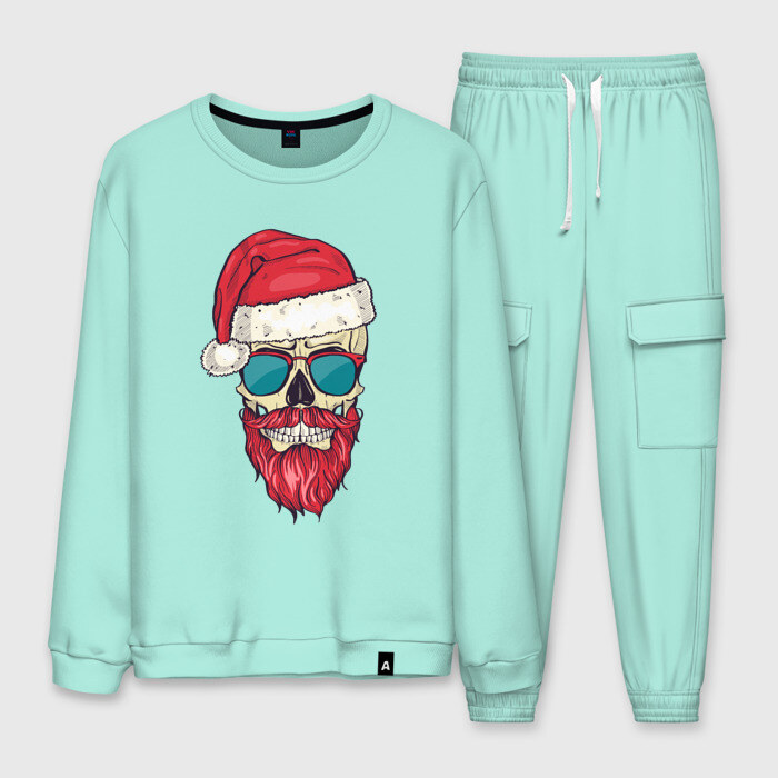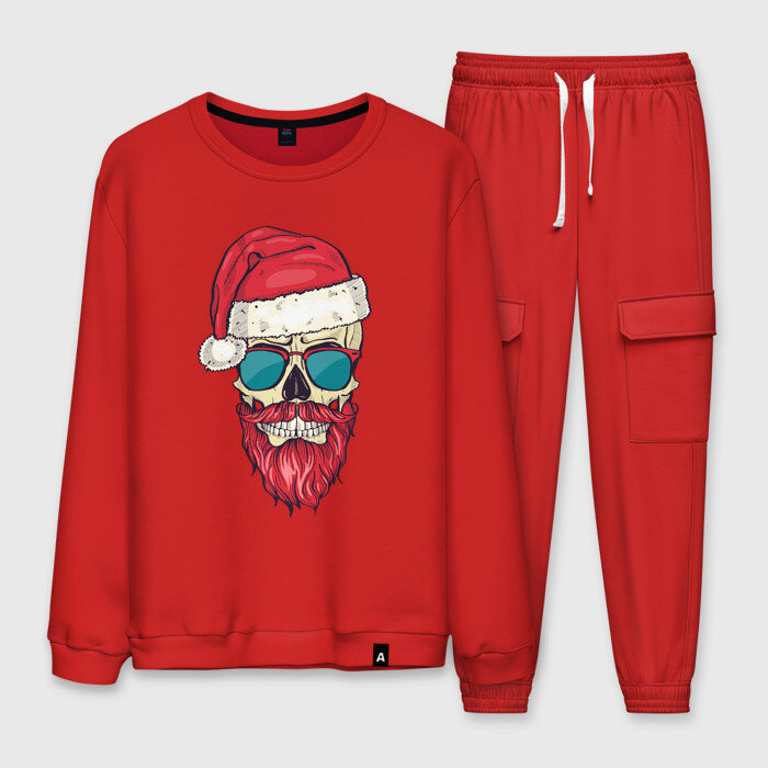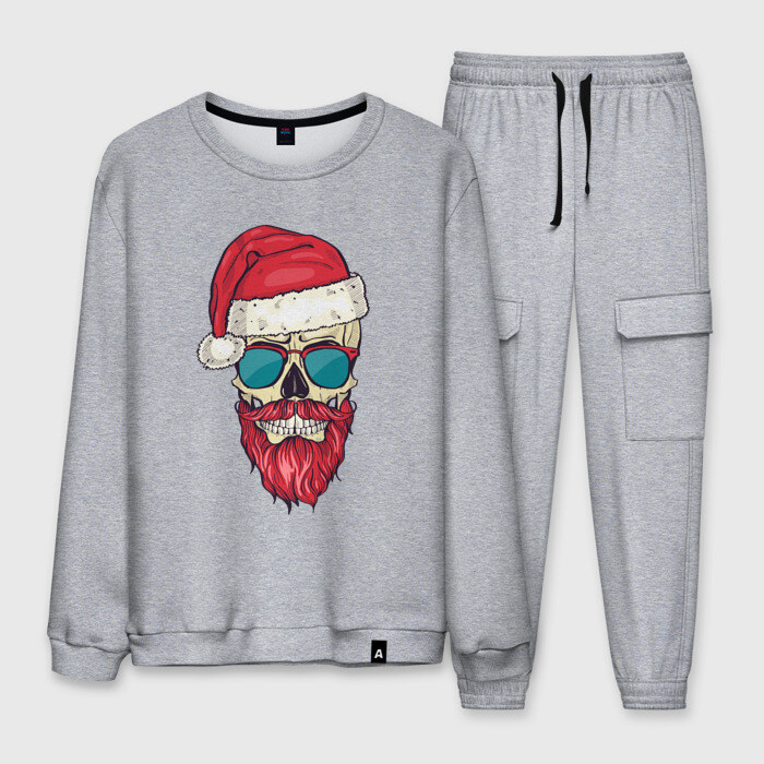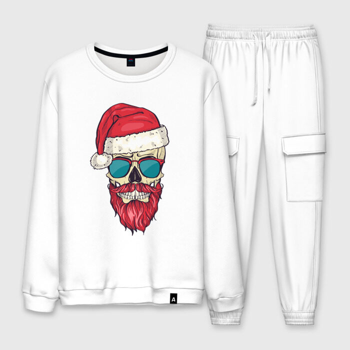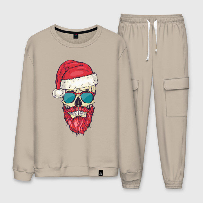 Мужской костюм хлопок с принтом Череп Санты Хипстера