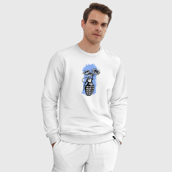 Костюм из мягкого хлопка с мягким и теплым начесом внутри. Базовая вещь в гардеробе, которую можно сочетать с другими вещами: например, брюки надеть с другой футболкой, верх носить отдельно. Пара выполнена из хлопка одного цвета, а брюки сшиты из той же ткани, что и базовый хлопковый свитшот . Брюки на поясе фиксируются не только широкой трикотажной резинкой, но и дополнительными завязками. Принт наносится только на свитшот. Можно заказать как со своим дизайном, так и вообще без него.