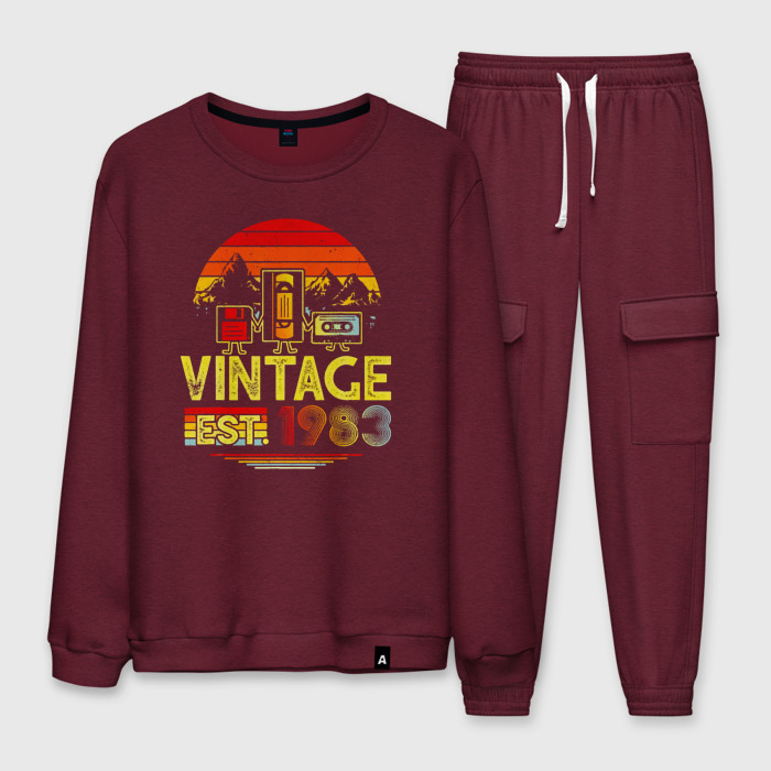 Мужской костюм хлопок с принтом Винтаж 1983 диск, вхс и кассета