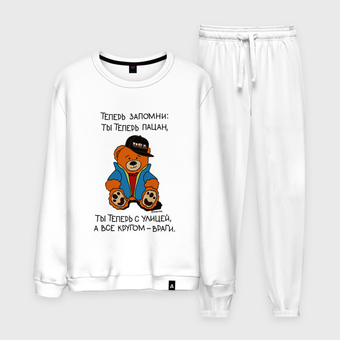 Мужской костюм хлопок с принтом Мишка: теперь ты пацан