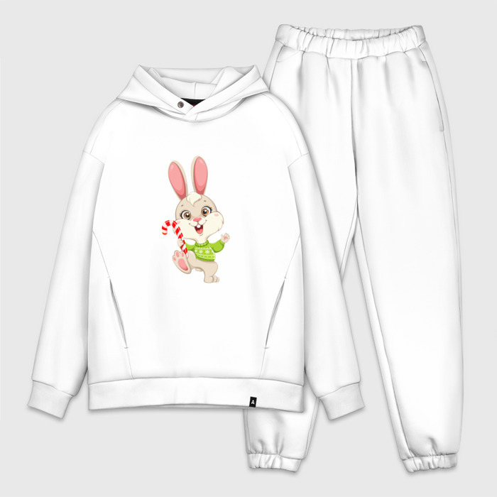 Мужской костюм хлопок OVERSIZE Зайчик с новогодним леденцком