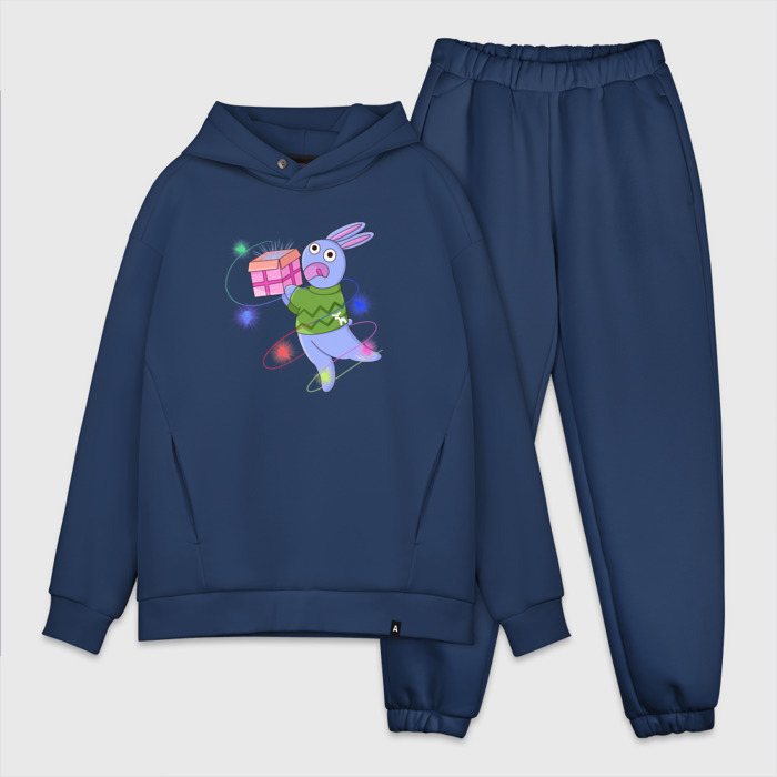 Мужской костюм хлопок OVERSIZE Новогодний кролик с гирляндой