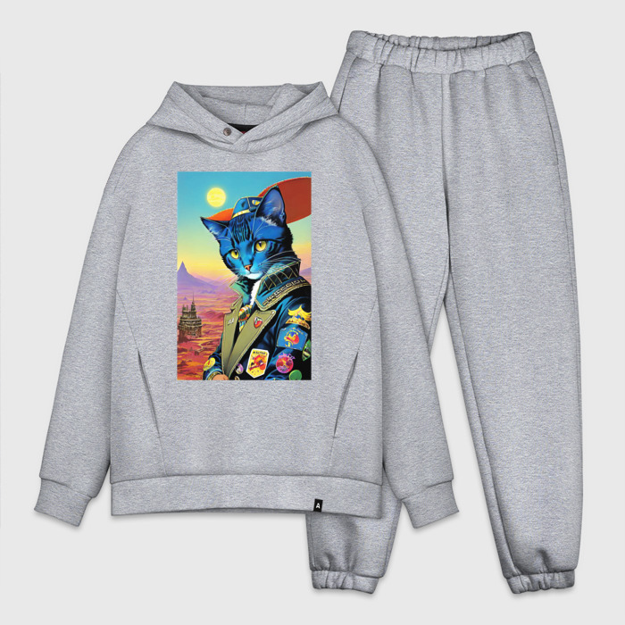 Мужской костюм oversize хлопок Модный кот ретро нейросеть