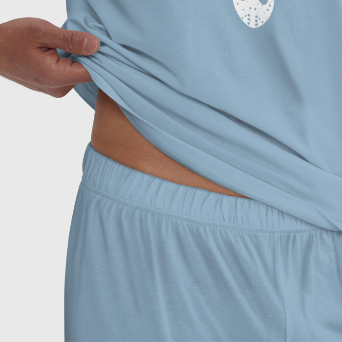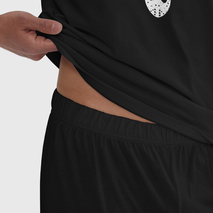 брюки и футболка прямого кроя, без карманов, на брюках мягкая резинка на поясе и по низу штанин