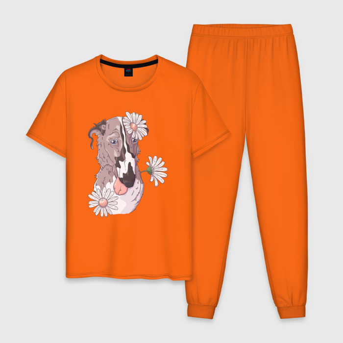 Мужские пижамы хлопок СОБАКА КОЛЛИ С ЦВЕТАМИ