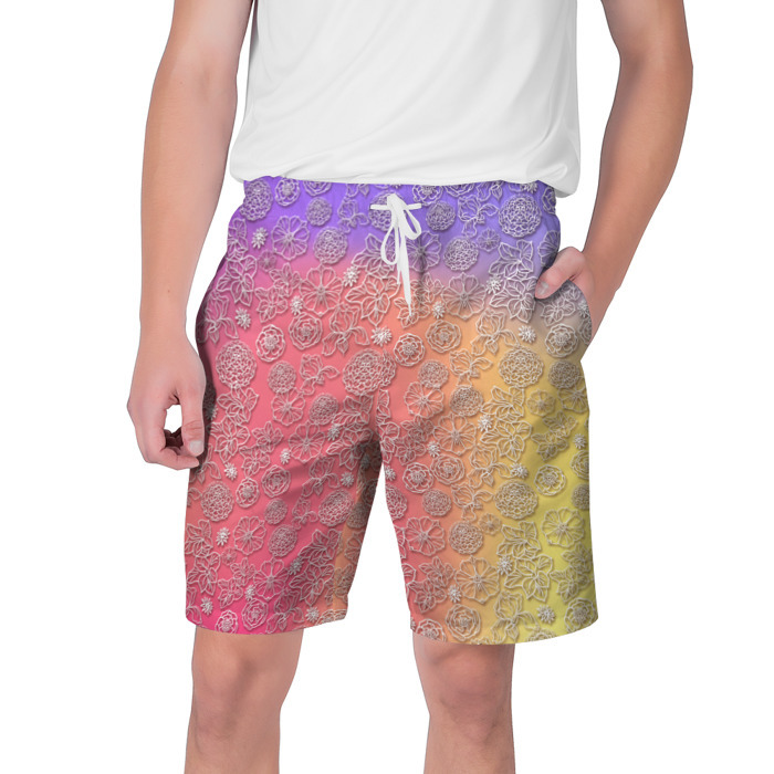 Мужские шорты 3D с принтом Белые цветы на цветном фоне