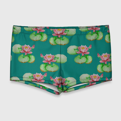 Мужские купальные плавки 3D ЛОТОСЫ НА ТЕМНО БИРЮЗОВОМ ФОНЕ