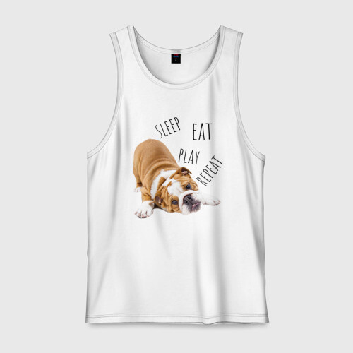 Мужская майка хлопок с принтом Sleep Eat Play Repeat (Бульдог)