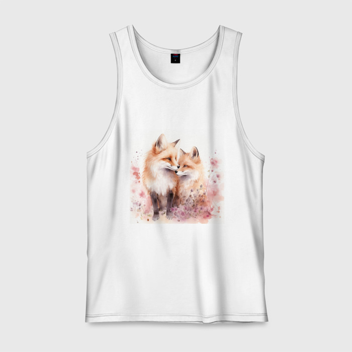 Мужская майка хлопок с принтом Романтические лисы