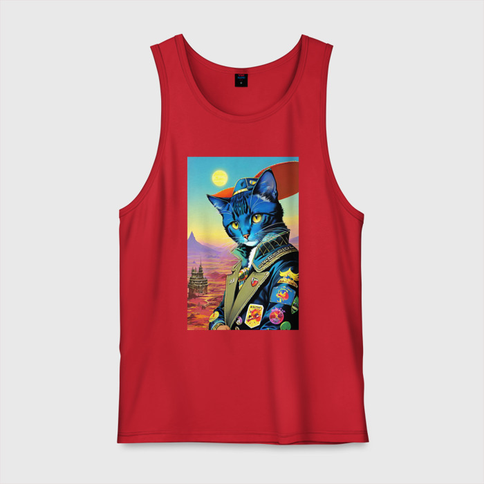 Мужская майка хлопок с принтом Модный кот ретро нейросеть