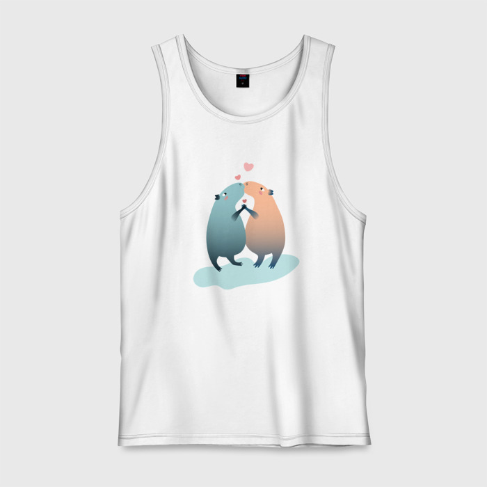 Мужская майка хлопок Влюбленные капибары целуются