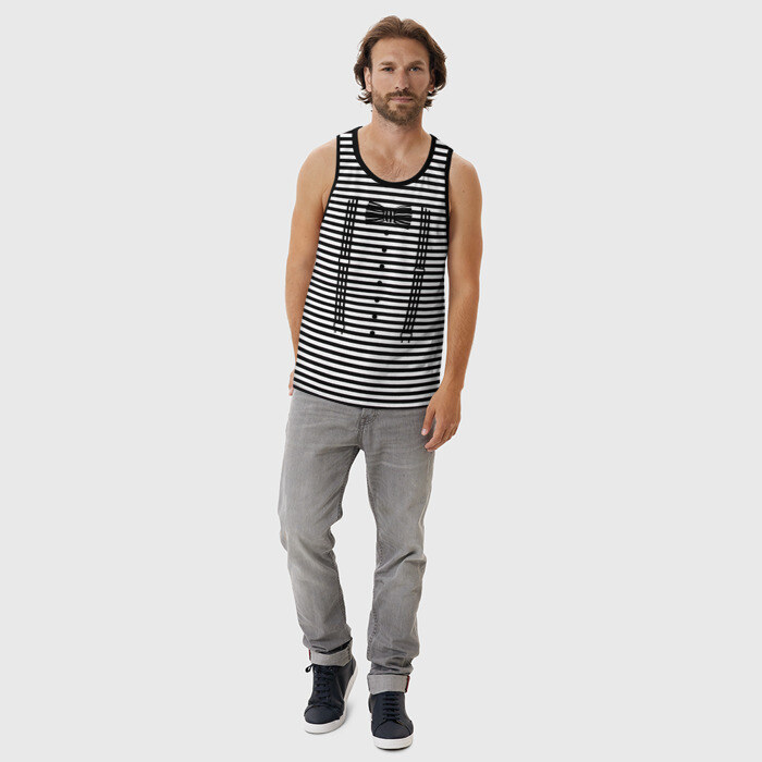 Мужская майка хлопок с принтом Галстук бабочка в полоску