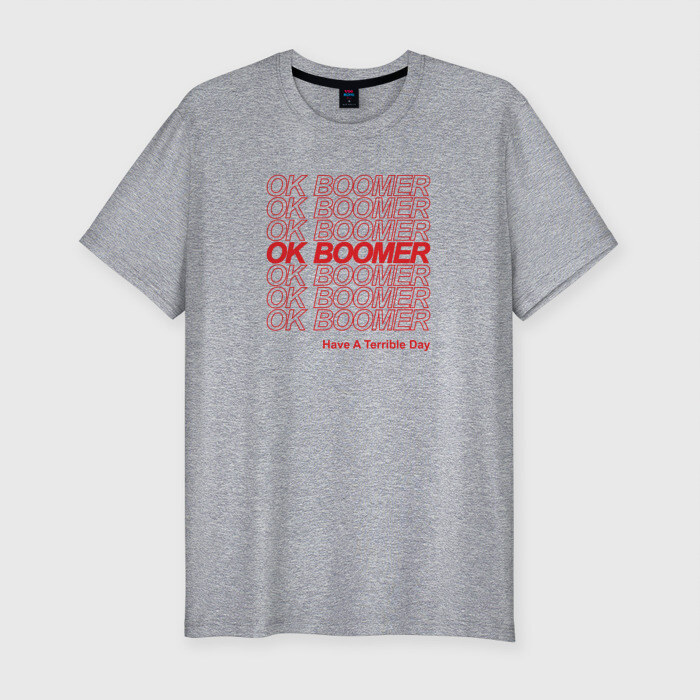 Мужская футболка премиум с принтом OK BOOMER (RED)
