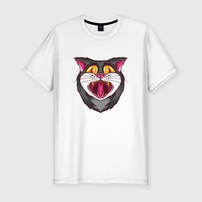 Мужская футболка хлопок Slim с принтом Зевающий кот прикол