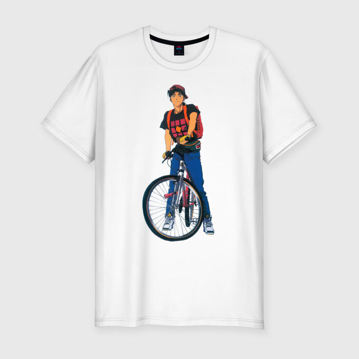 Мужская футболка хлопок Slim с принтом Golden Boy на своем велике