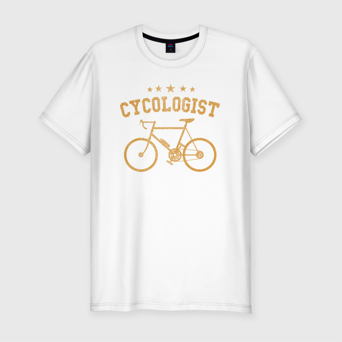 Мужская футболка хлопок Slim с принтом Велосипедист 5 звезд
