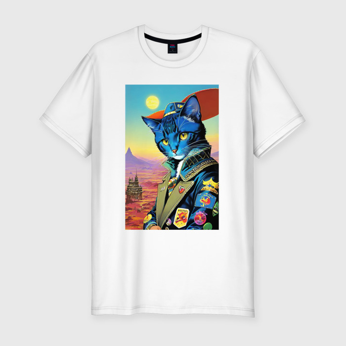Мужская футболка хлопок Slim с принтом Модный кот ретро нейросеть