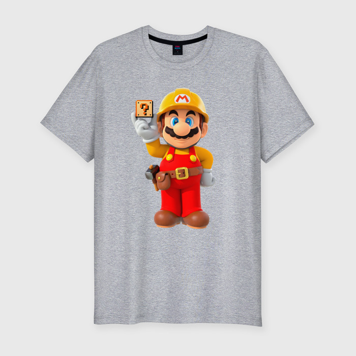 Мужская футболка хлопок Slim с принтом Марио строитель