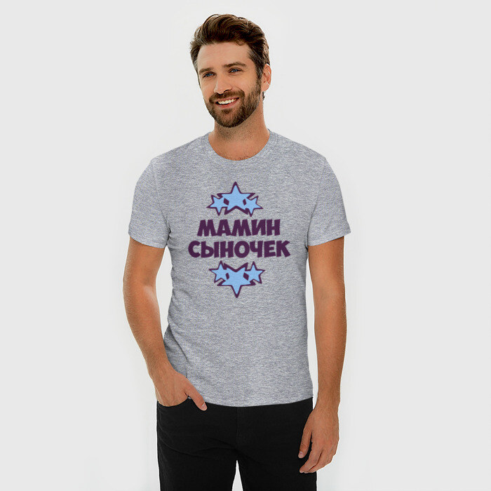 Футболка из плотного хлопка с добавлением лайкры: за счет этого ткань немного тянется, хорошо держит форму и комфортно садится по фигуре. Силуэт приталенный, ориентирован на мужчин с широкими плечами и узкими бедрами. Понравится тем, кто хочет подчеркнуть достоинства своего торса и любит футболки “по фигуре”.