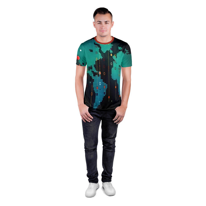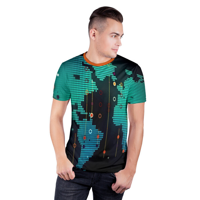 Футболка из синтетической премиум-ткани с улучшенными характеристиками: лучше пропускает воздух, влагу и быстро высыхает от тепла тела. Тянется, но сохраняет форму. За счет этих свойств особенно хороша для занятий спортом, но подойдет и для повседневной носки. Силуэт приталенный, ориентирован на мужчин с широкими плечами и узкими бедрами: понравится тем, кто хочет подчеркнуть достоинства своего торса и любит футболки “по фигуре”.  На ощупь футболки очень мягкие и приятные. Принт наносится по всей поверхности, можно заказать со своим дизайном.