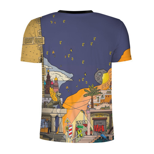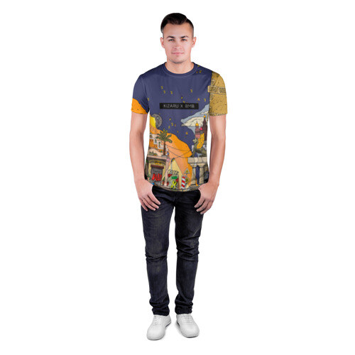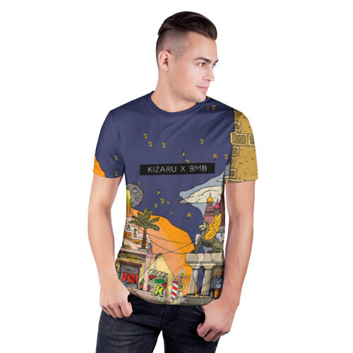 Футболка из синтетической премиум-ткани с улучшенными характеристиками: лучше пропускает воздух, влагу и быстро высыхает от тепла тела. Тянется, но сохраняет форму. За счет этих свойств особенно хороша для занятий спортом, но подойдет и для повседневной носки. Силуэт приталенный, ориентирован на мужчин с широкими плечами и узкими бедрами: понравится тем, кто хочет подчеркнуть достоинства своего торса и любит футболки “по фигуре”.  На ощупь футболки очень мягкие и приятные. Принт наносится по всей поверхности, можно заказать со своим дизайном.