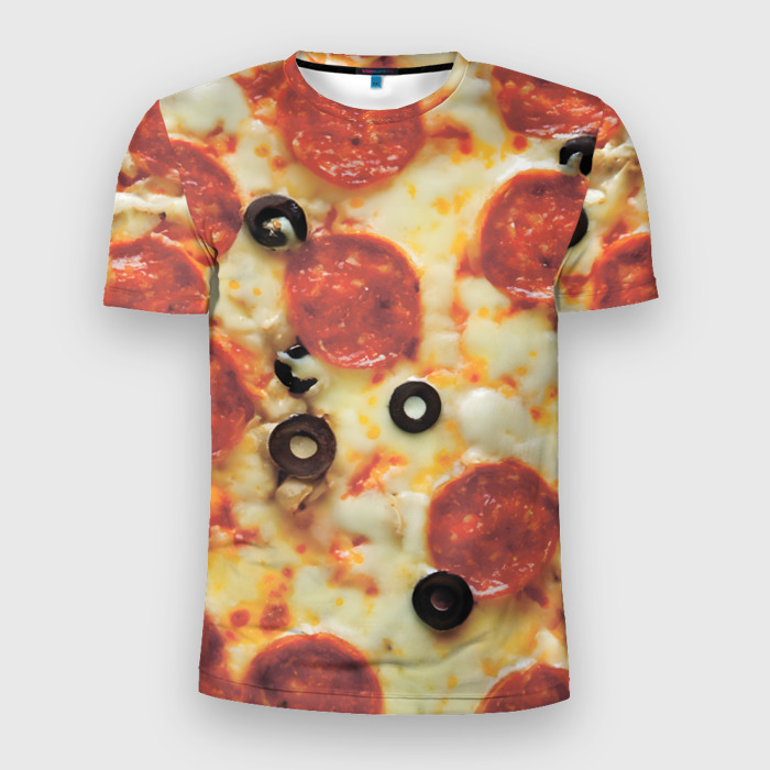 Мужская футболка 3D Slim с принтом Пицца с оливками