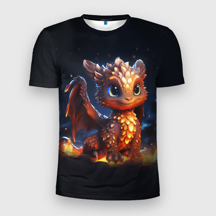 Мужская футболка 3D Slim с принтом Котик дракоша