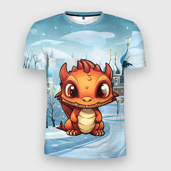 Мужская футболка 3D Slim Милый рыжий дракоша