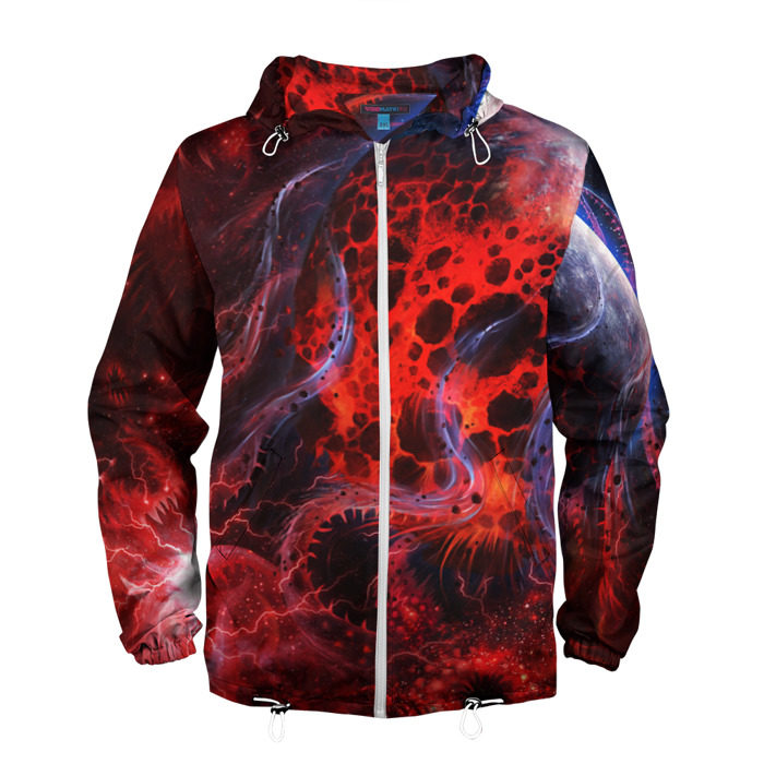 Свободная легкая ветровка с капюшоном, застегивается на молнию. Сшита из плотной ткани, по всей поверхности которой наносится принт. Можно заказать со своим дизайном.