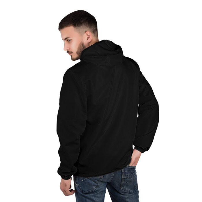 Свободная легкая ветровка с капюшоном, застегивается на молнию. Сшита из плотной ткани, по всей поверхности которой наносится принт. Можно заказать со своим дизайном.