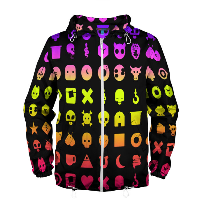 Свободная легкая ветровка с капюшоном, застегивается на молнию. Сшита из плотной ткани, по всей поверхности которой наносится принт. Можно заказать со своим дизайном.