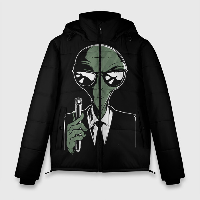 Мужская зимняя куртка 3D с принтом Пришелец в Черном