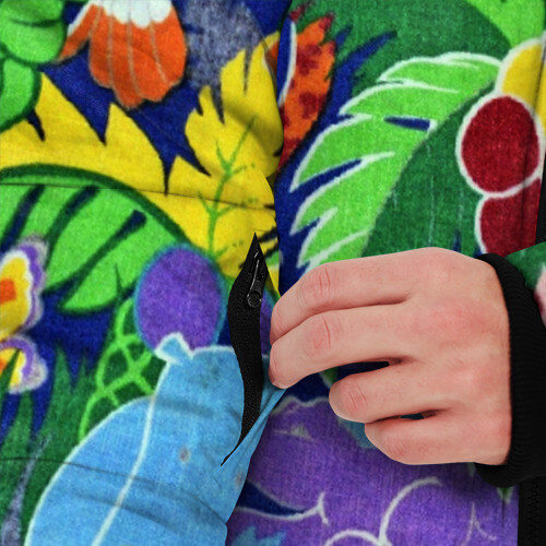 Куртка сшита из плотной ткани, по всей поверхности которой наносится принт. Можно заказать со своим дизайном.