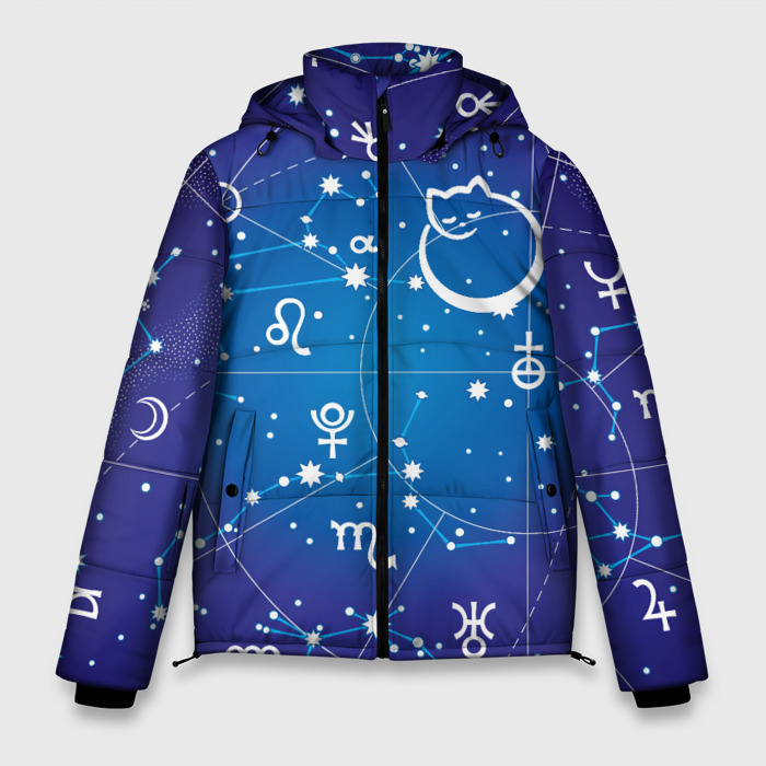 Мужская зимняя куртка 3D с принтом Котик символ 2023 на карте звездного неба