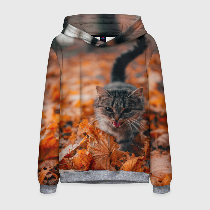 Мужская толстовка 3D с принтом мяукающий кот осенние листья