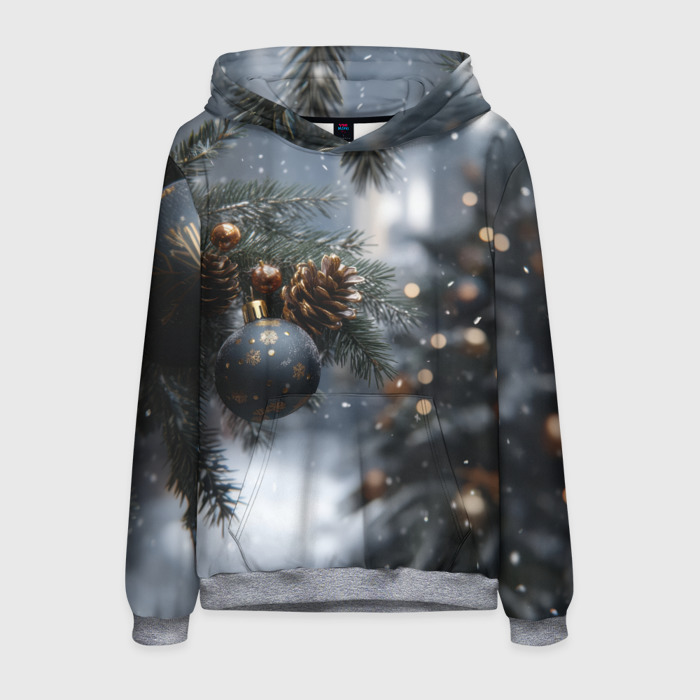 Мужская толстовка 3D с принтом Золотистые шары на ветках