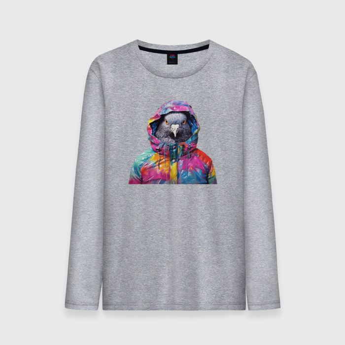 Мужской лонгслив хлопок Голубь в яркой куртке