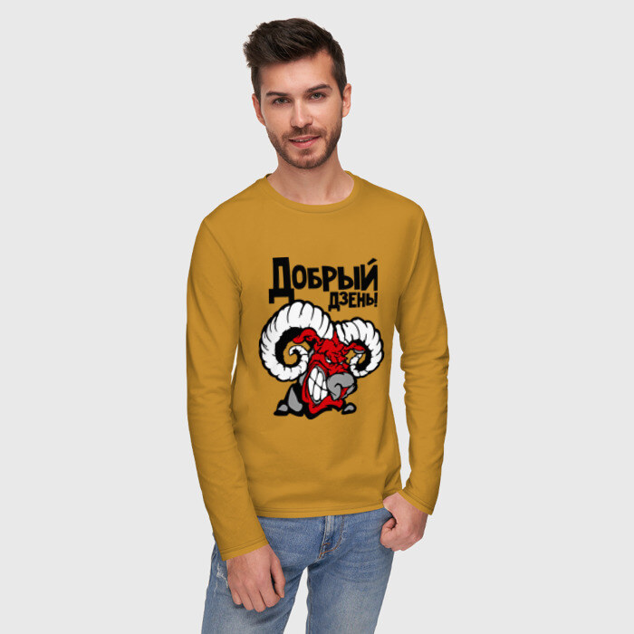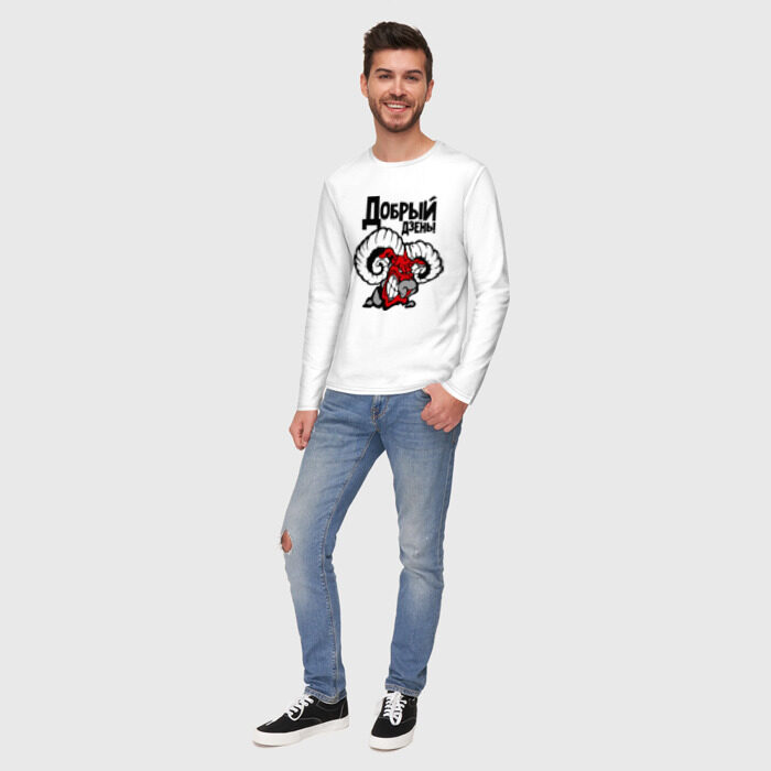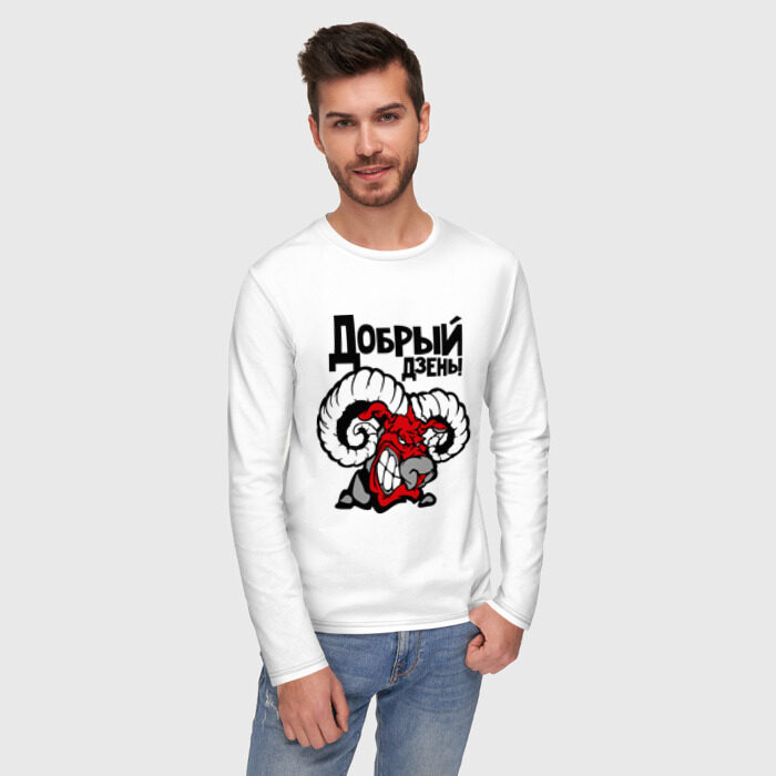 Мужской лонгслив хлопок с принтом Добрый дзень!