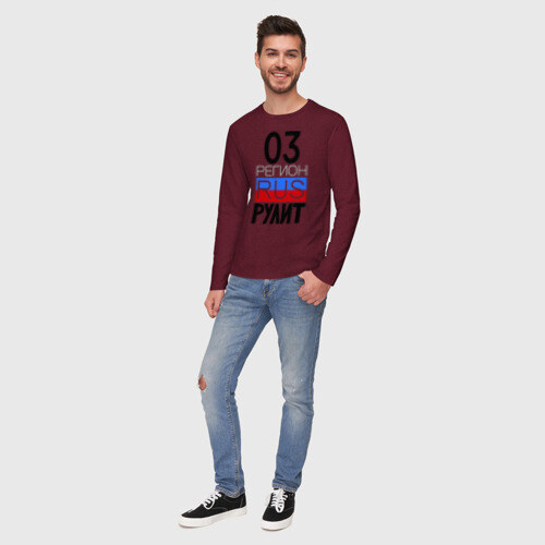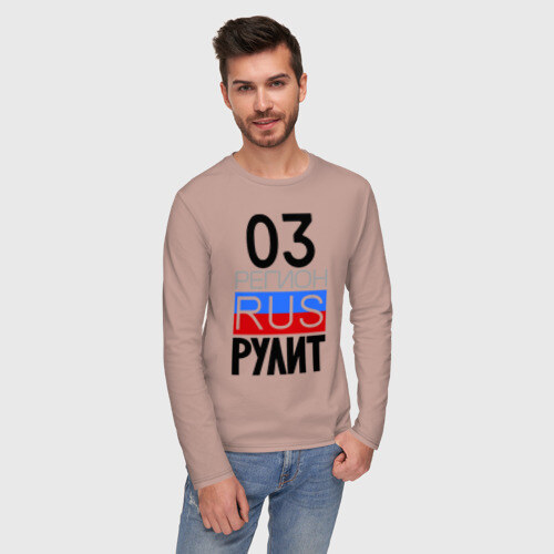 Мужской лонгслив хлопок с принтом 03 регион рулит