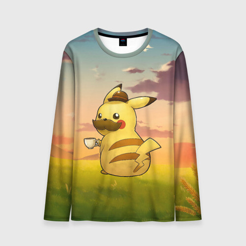 Мужской лонгслив 3D с принтом Детектив Пикачу